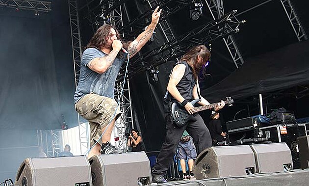 Následující čas jsem věnoval doplnění nějakých kalorií, takže Škwor jsem vypustil a přišel až na kanadské „dřevorubce“ Kataklysm. A to bylo pošušňáníčko. Jejích energický Death metal mi dal konečně zapomenout na polední „slabší dramaturgické“ chvilky. Kataklysm představili na Mástru svou novou bubenickou akvizici Oliviera Beaudoina, který podal opravdu excelentní výkon. V roce 2013 vydali Kataklysm zatím poslední řadovku Waiting for the End To Come, a právě skladby z tohoto alba tvořily stěžejní část jejích vystoupení. Z třináctiskladbového setu zazněly celkem čtyři songy.