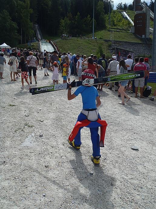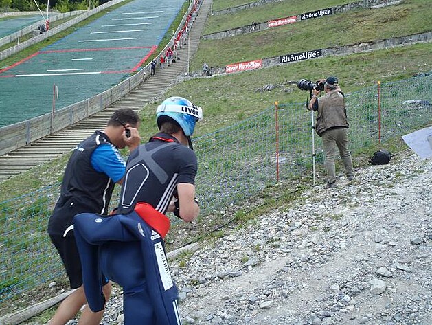 Zvolila jsem dvě disciplíny. První pouze v roli diváka. V pátek se konal v Courchevelu letní světový pohár ve skocích na lyžích. Připadalo mi to jako dost zimní aktivita, abych mohla tuto podívanou zařadit jako první bod programu. Po příjezdu na místo, jsem byla místními organizátory poslána na parkoviště. Organizované bylo však jen navádění na plochu, ale tam dál už nikdo nehlídal, jak kdo parkuje. Projela jsem celý vymezený prostor, kde si každé auto nechávalo přibližně metr místa od parkujícího souseda. Tedy nedostatek prostoru, aby se do něj vešlo další vozidlo, ale dost volného místa, abych si zanadávala. Parkovací plac jsem nakonec objevila a Frantíka, který se mi snažil vysvětlit, že bych měla parkovat příčně a ne podélně, jsem poslala... aby se šel podívat, jak parkují jeho kamarádi o dvě řady výš.