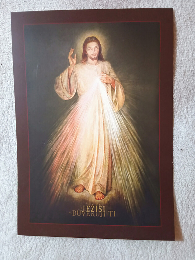 Když jsem jednou musela v kostele stát, zašla jsem si k poličce s letáčky. Našla jsem tam dva letáčky. Na jednom byl svatý obrázek pána Ježíše Krista a na druhé straně byl příběh o tom, kdo ho maloval, a jak ho maloval.