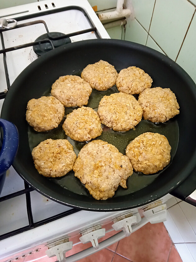 - Dáme si na ruce strouhanku a vytvaruje takovou placičku, až karbanátek.