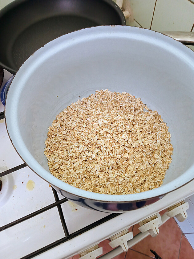 - Ovesné vločky uvaříme ve vodě se solí na kaši.