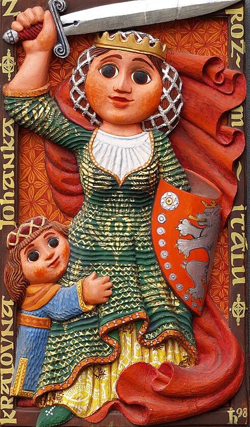 …a Johaně lehce přes čtyřicet! Přes tíživou situaci si zachovala chladnou hlavu. Už v srpnu svolala zemskou hotovost a včele vojska vytáhla proti Matyáši Korvínovi. Ale především se jí podařilo zrealizovat záměr zesnulého manžela - dosadit na český trůn Vladislava Jagellonského, synovce Ladislava Pohrobka a pravnuka Karla IV.