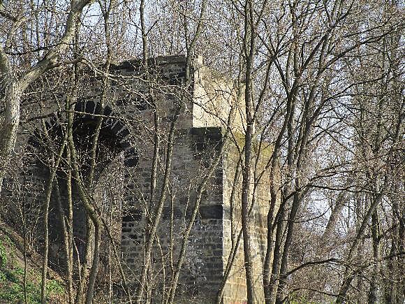 Obří trhliny a opadaná omítka, vlhké zdivo a kolem provizorní oplocení, jež blokuje část silnice...