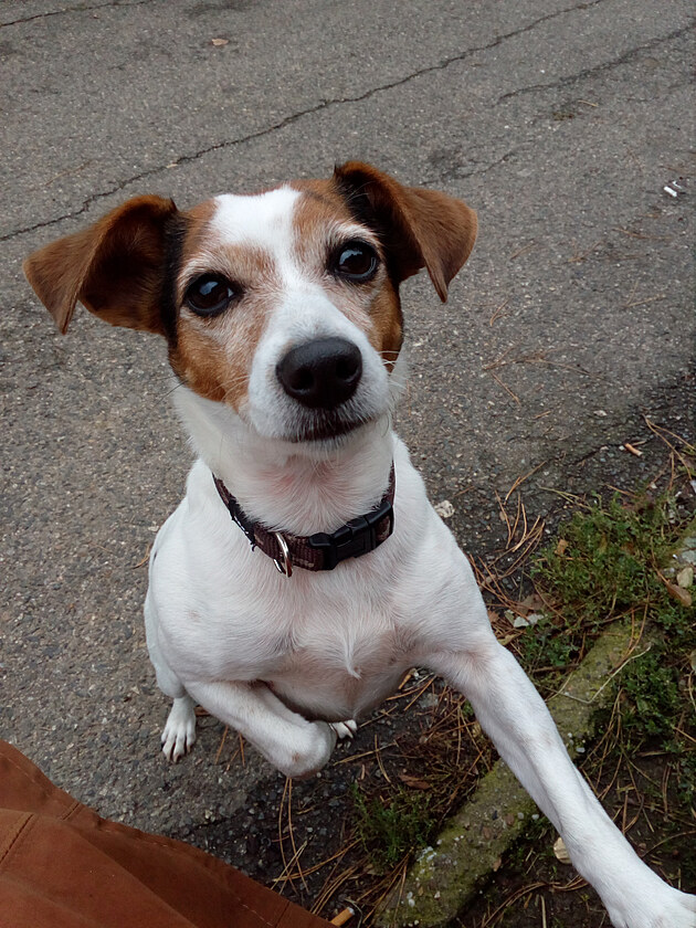 Je to naprosto šťastný pejsek. Má natolik optimistickou držtičku, že když jsme venku, kolemjdoucí se při pohledu na něj začnou usmívat. Já se taky usmívám, ale někdy je to náročné. Hlavně, když vás mrně v pět ráno mlátí uzlem nití do hlavy a dožaduje se skotačivé hry.