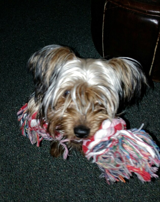 je onen skřítek z titulku. Občas tak vypadá. Je jorkšír, t.č. v pubertě. Je mu totiž půl roku.