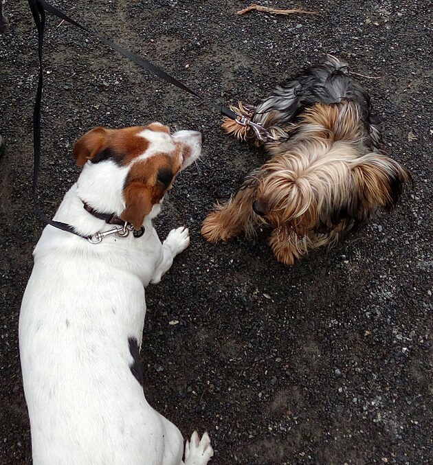 Četli jste Heriota? Kdysi napsal, že jorkšíři jsou psi s nejstatečnějším srdcem na světě. Potvrzuju. A taky to, že vůbec nevědí, že jsou tak mrňaví. Max vystartoval na dva vlčáky, kteří se ho příšerně lekli. A bohužel taky na Míšu, který si s ním chtěl hrát, když jsme je seznamovali. A tak se kamarády nestali...