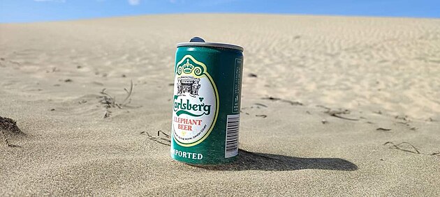 Narazil jsem na ně celkem náhodou. Ležela v písku, napůl odkrytá. Divný tvar i grafika. Takhle přece dnes už pivní láhve nevypadají. Pohřbeny pod pískem, nachází se odpadky. Vítr si přehazuje písek a mění tak podobu písečných dun.