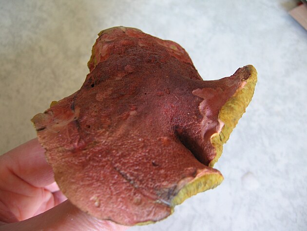 A teď hřiby?! Skvělé, zajásala jsem. Jediné, co mě zarazilo, bylo, že některé z hřibů měly klobouky zbarvené kromě hnědošedé barvy trochu dočervena. Jiné měly dokonce lehce růžový nádech. Ale jinak měly všechny náležitosti hřibů – žluté rourky, které po omaku zmodraly, žlutou až lehce do červena třeň (noha houby) také modrala. Zajímavé na houbách bylo, že měnily barvu klobouků podle toho, jak stárly. Mladé hříbky měly tmavě hnědou barvu, starší hnědou, postupně s lehce šedým odstínem a ty nejstarší hnědou či lehce šedou barvu s odstínem růžové. Houby krásně voněly. Bylo jich celkem dost a rostly mi za domem. Co víc by si mohl houbař přát?