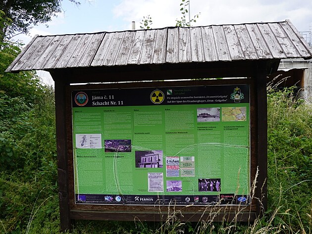 Památek infrastrukturního ryze hornického charakteru zůstalo na první pohled pomálu, je po nich třeba trochu pátrat. Každopádně vyrážíme od slavkovské věznice (historicky také spjatá s těžbou) po naučné stezce Uranová Golgota. Ta připomíná, že práce v místních dolech nebyla vždy dobrovolnou a perfektně budovatelsky ohodnocenou prací. Šestikilometrová stezka vede kolem areálu věznice a zemědělského areálu do lesa. Cestou míjíme informativní tabule popisující fungování místních dolů, utrpení tisíců trestanců a politických vězňů, kteří uran těžili. Tabule vybudoval spolek Permon v roce 2012. Některé mají zajímavou informační hodnotu, někde nulovou. Zub času (voda, vítr…) totiž nahlodaly písmo na posterech natolik, že se staly absolutně nečitelnými. Škoda. Není čas na lehký facelift? Každopádně se dozvíte, kde byly jednotlivé jámy, kde stály tábory, z nichž vedly k šachtám koridory mezi ostnatými dráty…
