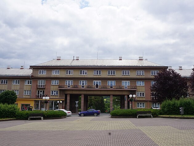 Pak vyjedete z toho starého, částečně zdemolovaného a zanedbaného, částečně se znovu nadechujícího k životu vstříc tomu novému, socialistickému, budovatelskému – které už je vlastně taky staré. Budova městského kulturního střediska (Hornický dům kultury), městského úřadu a obchodů (bývalý Hotel Tatran), celý komplex náměstí centra (obytně-obchodní komplex Brigádník) z poloviny dvacátého století a okolní bytové domy vybudované pro přicházející horníky jsou perfektní ukázkou architektury socialistického realismu, jak už to tak v hornických, průmyslových, budovatelských městech u nás bylo. Zmenšenina Havířova, Ostravy – Poruby, ale vlastně také bližšího Ostrova nad Ohří (ostatně stejný závod – Jáchymovské doly, stejný architekt například…).