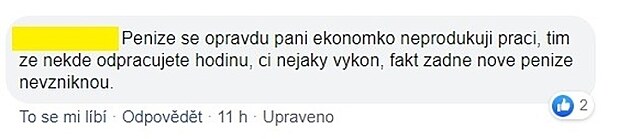 Třetí pán mi napsal: Peníze se opravdu neprodukují prací. Nekomentovala jsem to. Nikoliv proto, že na internetu v 99,9999 % případů nic nekomentuju. Nýbrž proto, že s pánem, který si myslí, že prosperita se rodí na stromech, že na bohatství je nárok a že k němu není potřebná práce, nemohu mluvit. Jsme každý z jiné planety a mluvíme jiným jazykem. Taková víra je ideologií člověka, který je ochoten vzít si, co mu nepatří. Nechat se živit někým, kdo pracuje a hodnoty generuje.