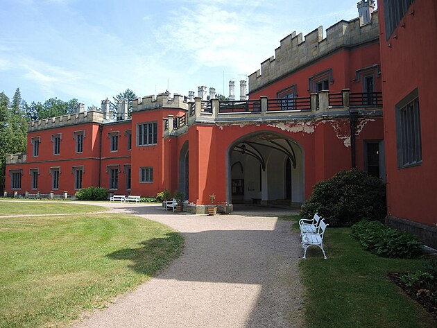 Hrádek u Nechanic. Neogotický zámek byl postaven v letech 1839-1957. Je vyhledávaný filmaři.
