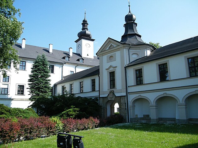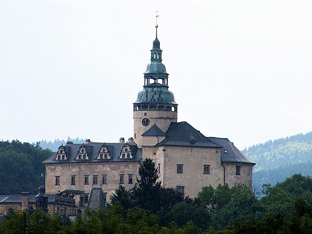 Náchodský zámeček z vršku kulatého a už mě má milá vezou, vezou z něho. Státní zámek nelze přehlédnout. Celý komplex má pět nádvoří.