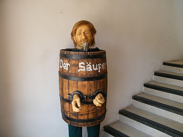 Z ukázek středověkých mučení je pozoruhodné opatření proti alkoholikům.