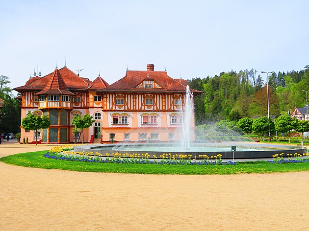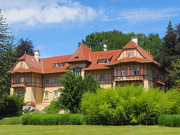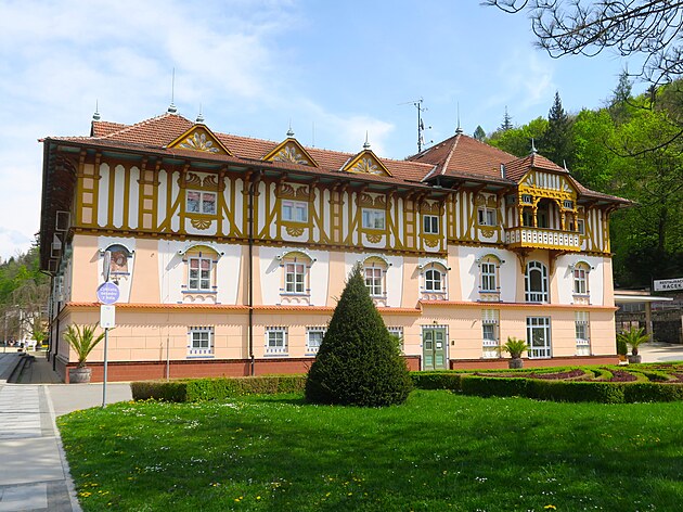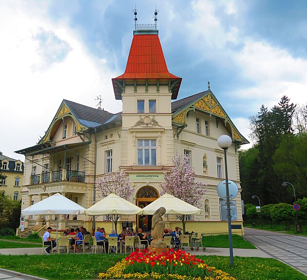 Historická vila Najáda. Zde se nejenom lázní, ale také pojídá v čokoládovně čokoláda. Co taky jinýho.