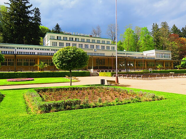 Ale samozřejmě jsme si lázně také prošli. Lázeňský hotel Jestřabí je typickou ukázkou architektury Dušana Jurkoviče.