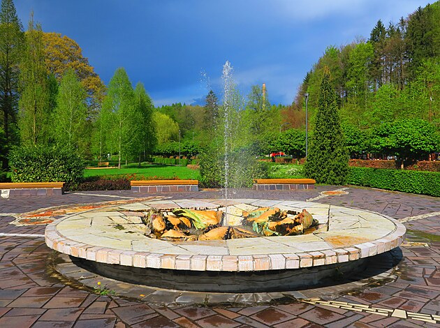 z druhé strany s fontánou a
