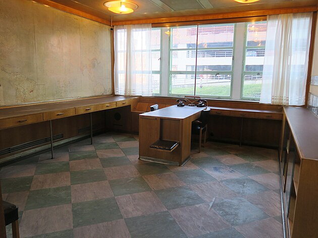 taky výtah s kanceláří. Baťou prý nikdy použitý. Z terasy na střeše
