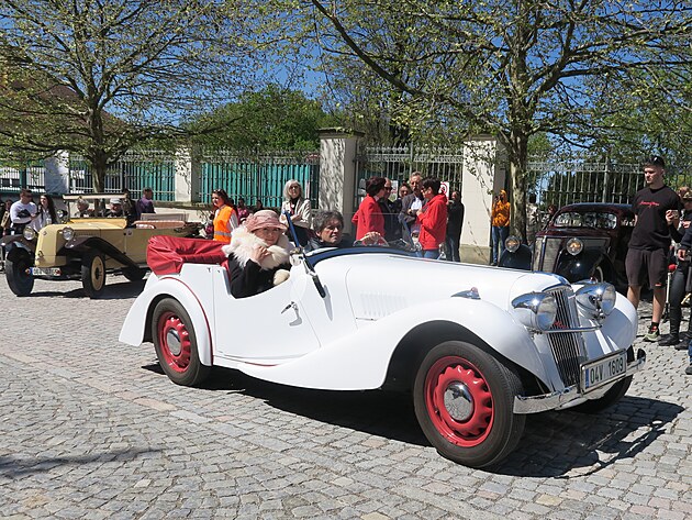 Stylová retro doprava do místa konání se přímo nabízela.