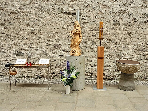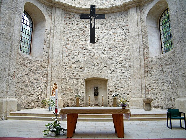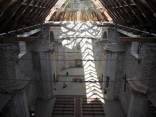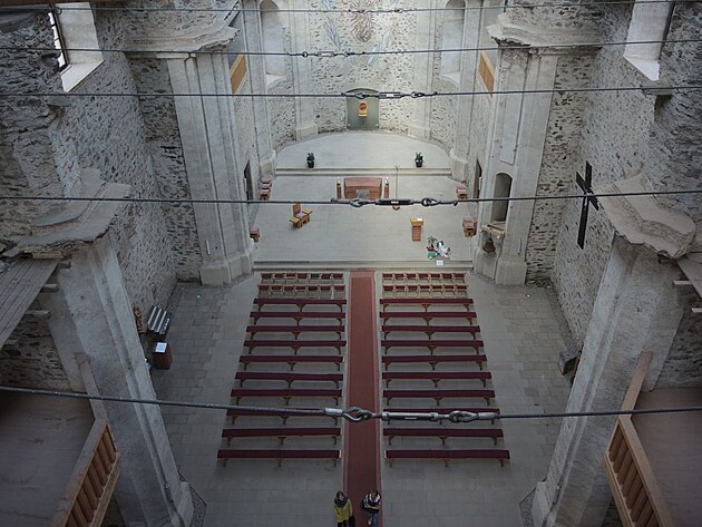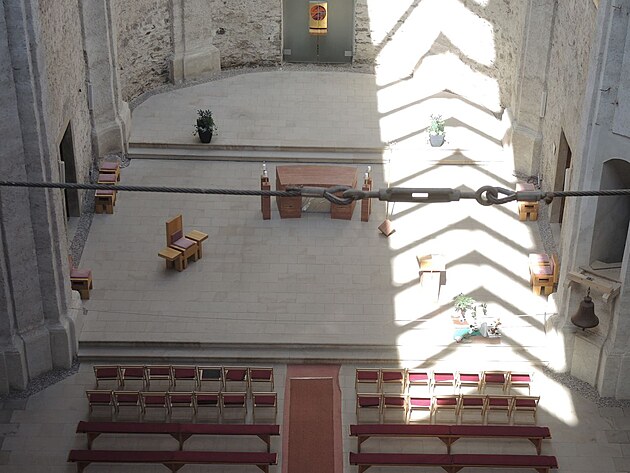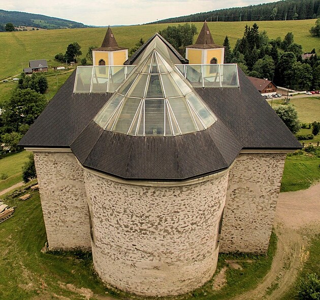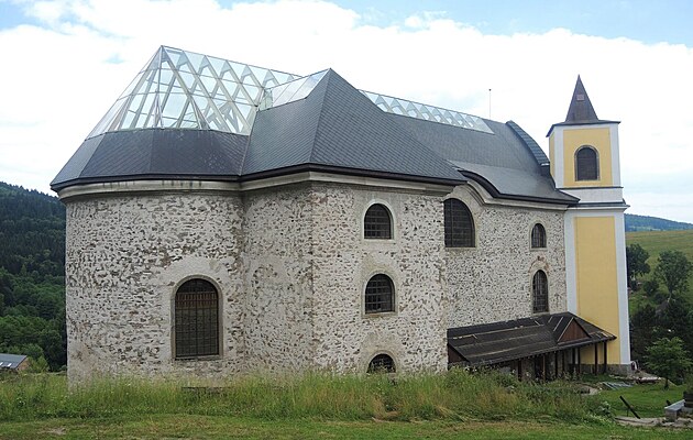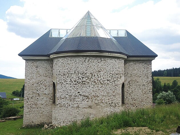 Pojďme kostel obejít. Prosklená střecha jen vynikne.