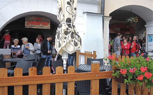 chvíli pršelo. To se opět osvědčila výhoda našeho podloubí.