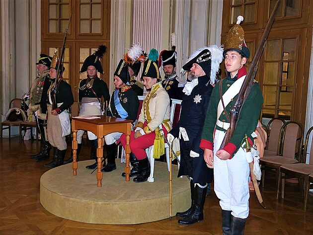 Když obě Veličenstva usedla, mohla sláva začít. Ve skutečnosti se ve Slavkově nepotkali.
