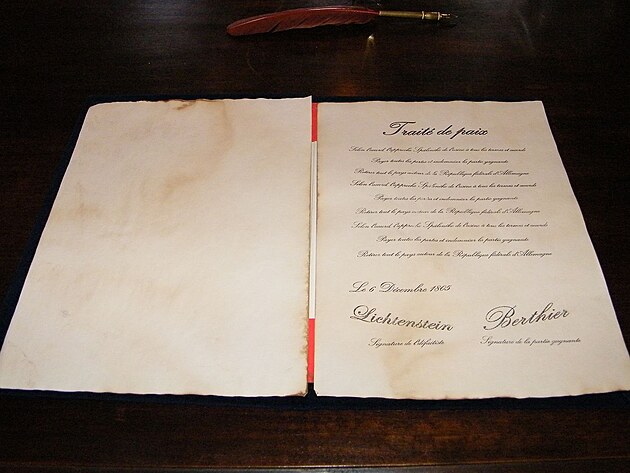 a za Francouze ji podepsal maršál Berthier a za Rakousko kníže Liechtenstein. Stalo se tak dne 6.12.1805.