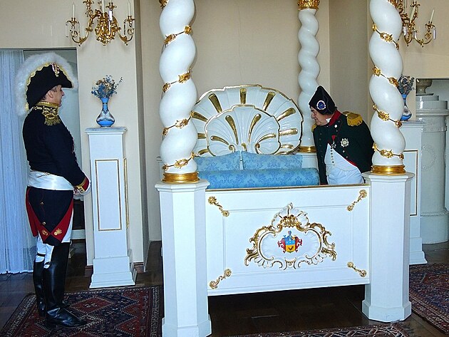 Před bitvou spal na zámku ruský car, po bitvě Napoleon. Buď se mu do postele po carovi moc nechtělo a nebo to naopak bral jako satisfakci.