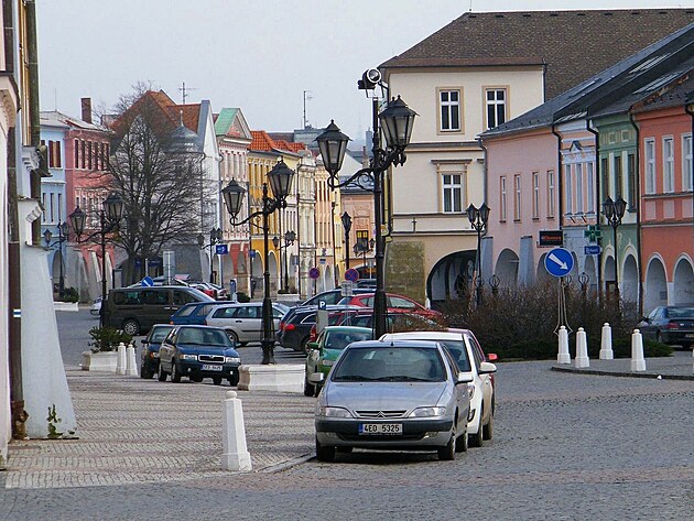 Přibližně uprostřed stojí stará radnice, a pak
