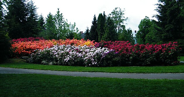 a za ní, v parku Jana Palacha, se chlubíme azalkovým a rododendronovým královstvím.