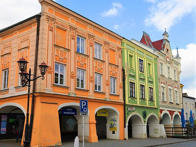 Fotopovídání rozdělím na několik místních částí a začnu v centru na náměstí, které tradičně soutěží o nejdelší podloubí u nás. Jestli je u nás v Litomyšli nebo Telči.