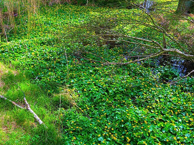 s velkou kolonií Caltha palustris. Teda Blatouchů bahenních, kdyby někdo nevěděl.