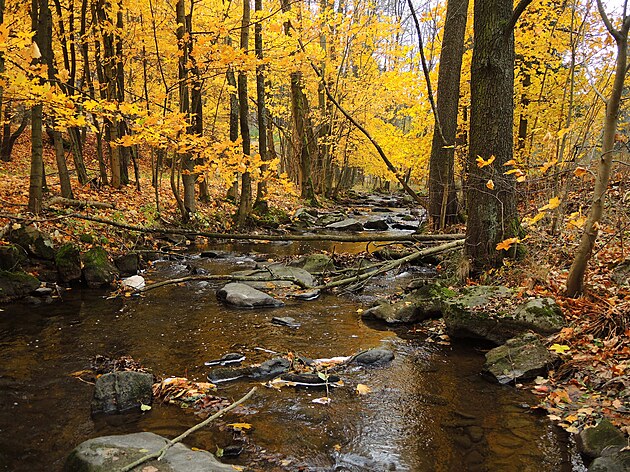Jedete a jedete po důlních stezkách a lístí pod vámi šustí, šustí a šustí.