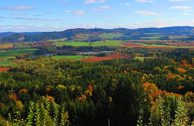 Pohled z vyhlídky na Hřebči do kraje u Moravské Třebové.