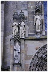 novinkou, která se pevně zakořenila až v dobách románských. Zároveň začala architektura absorbovat filozofické principy křesťanství. Klasické trojité členění staveb v horizontální rovině se přeneslo v dobách románských také vertikálně. Triérský dóm již z této logiky vychází. Spodní dvě části dómu jsou zároveň masivním základem celé stavby, horní třetí část (část boží) je představována věžemi a báněmi. Posledním představitelem na Triérském náměstí je gotická katedrála. Tato stavba je dokonalým předobrazem Věčného města - Božího Jeruzaléma. Základ stavby tvoří křesťanský kříž doplněný apsidami a propojený s dómem. Jeho vertikální členění je přísně křesťanské - trojné. Obrovský portál přechází do celé přední části stavby a také výzdoba podporuje jeho trojné členění, část lidská, královská a boží. Taková byla představa o řádu světa.