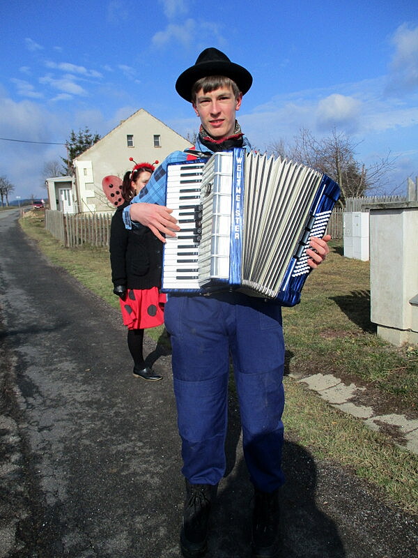 Tak to jsme my, malí, ale šikovní a každým rokem nás přibývá. Masopustní tradici jsme u nás obnovili před pěti léty. V naší malé obci se pomalu, ale jistě "rozmnožujeme", letos byl celkový počet masek osmnáct. Ale pevně věřím, že nás bude víc a pro děti pak uspořádáme nějaké překvapení.