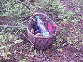 Po marném hledání, jsem usedla na pařez a přemýšlela, co dál. V tom mně zrak padl do dálky na něco červeného. Vždyť je to můj mobil! Přeskákala jsem pařezy, jak srnka průzkumnice a s radostí popadla můj dlouho hledaný koš.