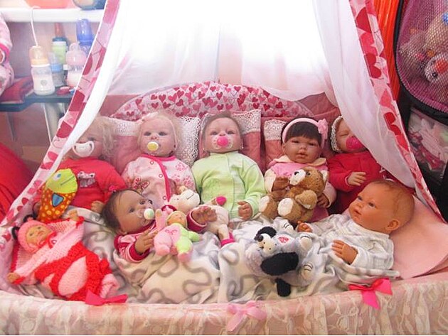 „Začala som s týmto koníčkom pred tromi rokmi. Keď mi diagnostikovali rakovinu maternice. Niekto si rebornky kupuje, keď deti odídu z domu, potom poznám ženu, ktorá si ich len vystavuje a má ich viac ako dvesto,“ vysvetľuje. Vzťah k bábikám však mala vždy. Už ako dieťa sa starala o svoje obľúbené bábiky. Najdrahšia rebornka stála 500 eur a pomenovala ju Samko. Keď Samka vyťahuje z kočíka tak mu jemne pridŕža hlavu a láskyplne ho drží v náručí. „Viem, že nie sú živé. To je jasné. Ale mám ich ako svoj relax, rada si ich fotím v rôznych situáciách a dávam tomu príbeh,“ pokračuje zberateľka z Bratislavy. Ukazuje fotky, kde sú dve deti, ako sa hrajú. Na ďalšej vyzerajú, že si niečo šepkajú alebo jedia kašu. „Na internete som videla videá, ako im ženy vymieňajú plienky a chodia s nimi do nákupných centier. Dúfam, že to robia iba kvôli videu a nemyslia to vážne,“ hovorí Mária Horňáková. Aj ona chodí von s bábikou v kočíku, ale hovorí, že je to len spôsob, ako sa môže vonku prejsť bez toho, aby nekráčala sama. „Lekár mi povedal, že mám chodiť po čerstvom vzduchu a mám chodiť sama ako idiot? Tak vezmem kočík a nikto nevie,“ smeje sa.