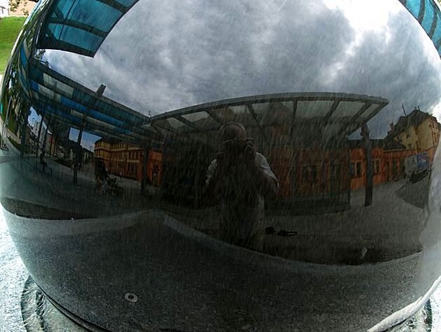 Žulová zeměkoule s kontinenty se otáčí (video) proudem vody