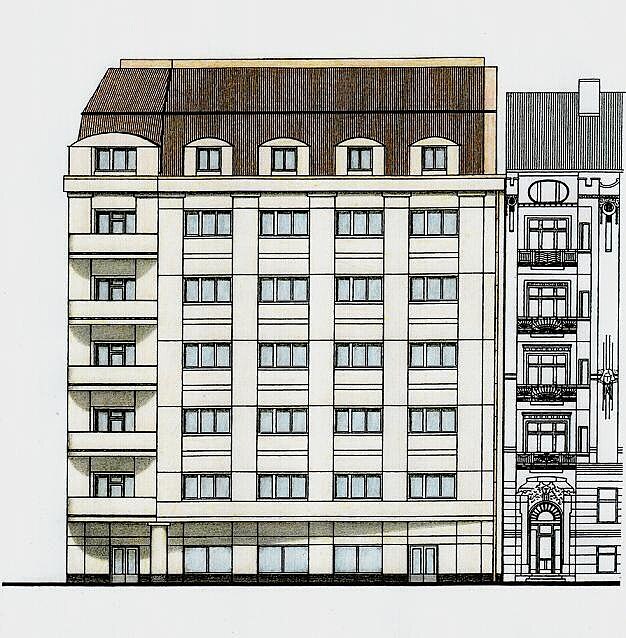 Vracím se zde ještě jednou ke svému návrhu na přestavbu "Tančícího domu". Kompozice objektu je tvořená základními geometrickými tvary, proporčně skloubenými do harmonická a monumentální architektonické formy, která zohledňuje dobře i funkční aspekty stavby. Nic zde již nelze přidat ani ubrat. Sousední secesní domy mají na fasádách navěšenou spoustu ozdob, moderní architektura již takové až zbytečné zdobení nepotřebuje.