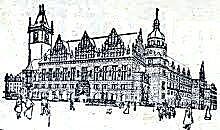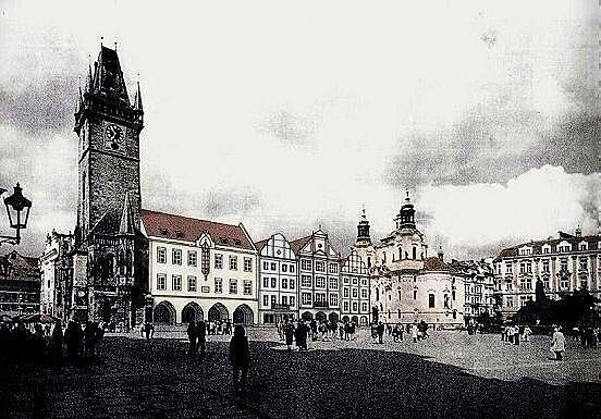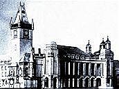 Návrhy od A.Wiehla, B.Hübschmanna, P.Janáka, J.Gočára. Na posledním obrázku nové řešení západní strany Staroměstského náměstí, které čerpá z přínosu moderny, ale váží si také hodnot, které nám odkázali naši starší předkové.