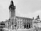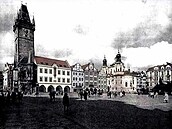 Tísnění hlavního průčelí kostela sv.Mikuláše radniční budovou (urbanistická kolize).