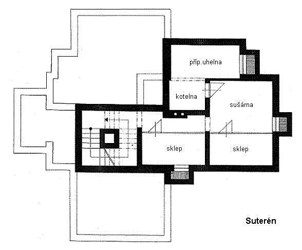 V suterénu jsou sklepy, sušárna a kotelna.