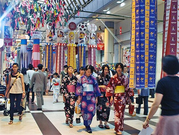 V ulicích visí pestrobarevné fáborky z origami, lidé píšou svá přání a milostné básně a věší je na bambusové tyče. Dívky oblékají kimona a vyráží do ulic. Večer se pak pořádají nejrůznější zábavy a oslavy s tradičními tanci. Je to prostě pastva pro oči....