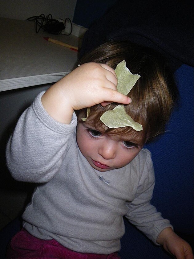 Ohromná zábava je vše co lepí. Úplnou náhodou jsem na to přišel když jsme malovali a používal jsem papírovou lepenku na zeď. Ty dětska prostě zajímá jak to všude drží a hlavně na prstech a to se potom rozčilují když jim to z těch prstů nejde dolů. Zábavné, doporučuji.