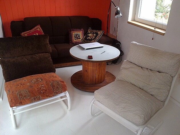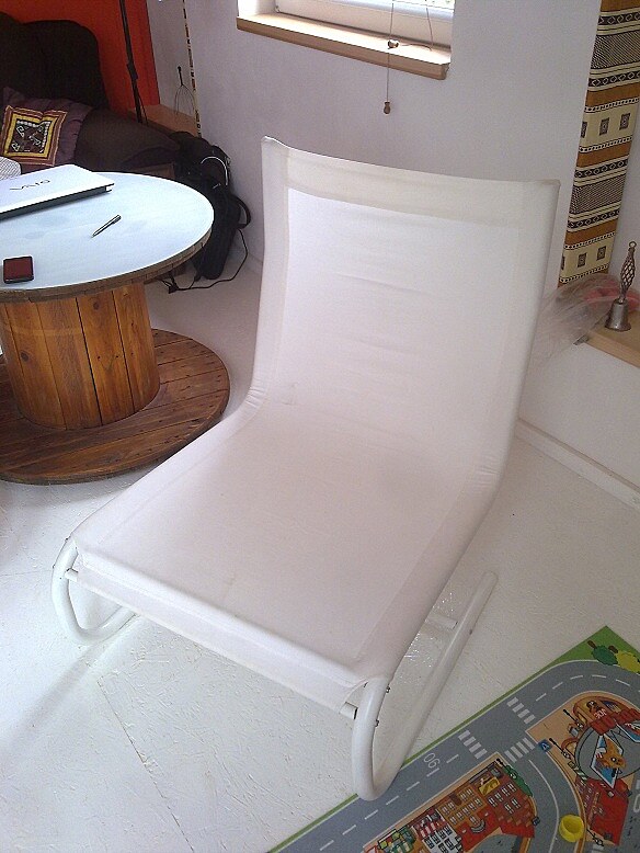 Dnes se ale chci zabývat křesly. Jednoduchá kovová trubkovitá konstrukce do tvaru S, takže při sezení se můžete pohupovat. Na konstrukci jsou jednoduše posazeny tři hranaté polštáře. Křesílka jsou neuvěřitelně pohodlná a designově povedená. moc jsem se divil, když mi majitelé řekli že je kupovali do jejich prvního bytu před 45 lety!