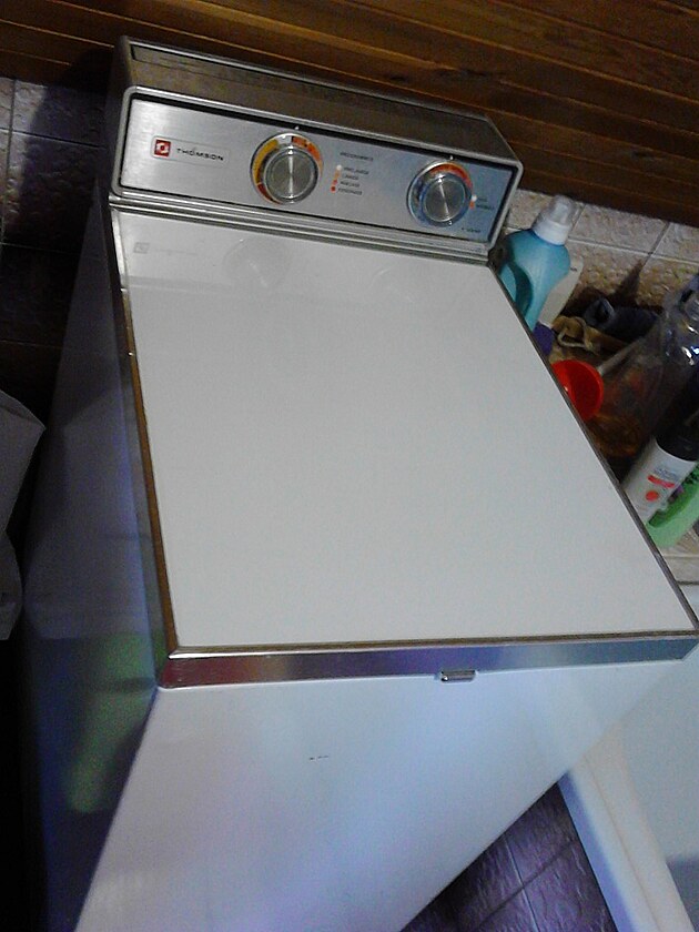 Mezi věcmi byla parádní designová pračka Thomson. Vyrobena před 35 lety, ale byla vyrobena na západě. Horní otevírání dotekem (víko se pomalu a ladně otevře bez nutnosti odklopení), materiály hliník a nerez. Čtveřice výsuvných koleček pro lepší manipulaci a základna kompletně odpružena, takže při ždímání (1200 otáček) se pračka ani nehne! O tom si může spousta nových praček nechat jen zdát. Ovládání jednoduché dvěma velikými otočnými knoflíky, které krásně a přesně klakají :) . A pozor ... má úsporný EKO program! Pračka je těžší než moderní stroj, to ano, ale to je kvůli kvalitnímu zpracování a použitým materiálům. Také má izolaci, takže je tišší než babičinná nová Candy.