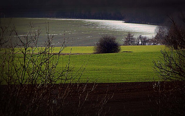 zem smrcin, žit a potoků a střech.