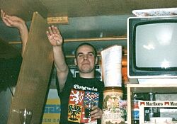 Pavel Eichler ukazující kolik sněhu napadlo u Stalingradu v tričku Bohemia.