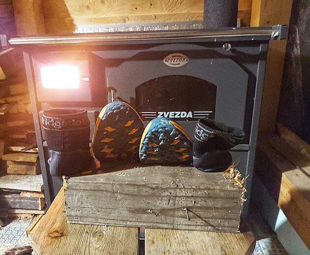 Teplo mě čekalo v útulně, když jsem si zatopila v kamnech. Setmělo se, útulnu osvětlovala kamna a žárovka. Byla opravdu útulná. Prosklenou stěnou jsem sledovala, jak přijíždí další a další hosté z uzavřené společnosti. Oni naopak měli výhled na mně, jak jím, dávám sušit oblečení…V tom mi to došlo. Nechala jsem na věšáku před koupelnou bundu! Chvíli jsem sbírala odvahu, že proniknu do společnosti, ale nakonec jsem zbaběle požádala o pomoc jednoho z hostů. Za chvilku jsem měla bundu zpět. Dost jsem si oddychla. Mohlo to dopadnout hůř. Jsou i jiné kousky oblečení. O ty bych škemrala vážně nerada.